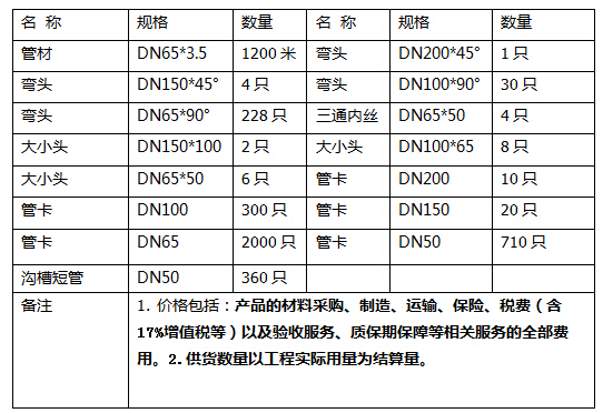 4.)供貨范圍:給水內外涂塑復合鋼管及相應管件