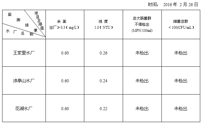 發(fā)布時(shí)間:2016-02-26 所屬欄目:水質(zhì)報(bào)告 點(diǎn)擊次數(shù):4366 返回上頁(yè)