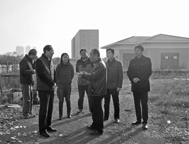 如圖:城投公司總經理、黨委副書記陳澤云一行實地查看鐘山加壓站建設情況