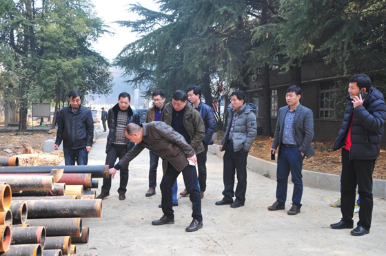 2月8日,公司班子成員在鐵山加壓站給職工拜年時查看熊家境供水工程管材