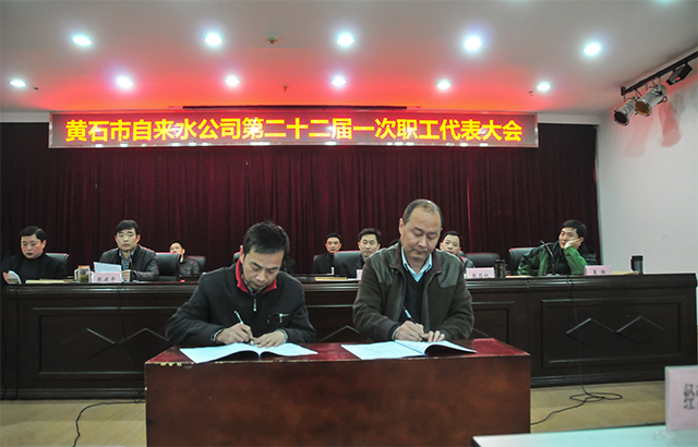 與會代表認(rèn)真聽取并審議通過了《公司工作報告》、《黃石市自來水公司“十三五”供水發(fā)展規(guī)劃要點(草案)》、《關(guān)于公司加入武漢城市圈職工重大疾病醫(yī)療互助的議案》、《關(guān)于實行公司制改造的議案》,并對公司領(lǐng)導(dǎo)班子及班子成員進(jìn)行了民主評議。公司總經(jīng)理劉子俊對職工代表提出的生產(chǎn)經(jīng)營、職工培訓(xùn)、智能信息運用、職工福利等方面的意見和建議一一進(jìn)行了解答。他代表公司與各基層單位簽定了《2016年度量質(zhì)化考核責(zé)任書》、《2016年度績效考核責(zé)任書》。