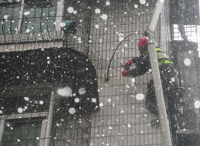 今年雪災(zāi),為市民免費(fèi)更換水表和外墻管。紀(jì)云霞攝