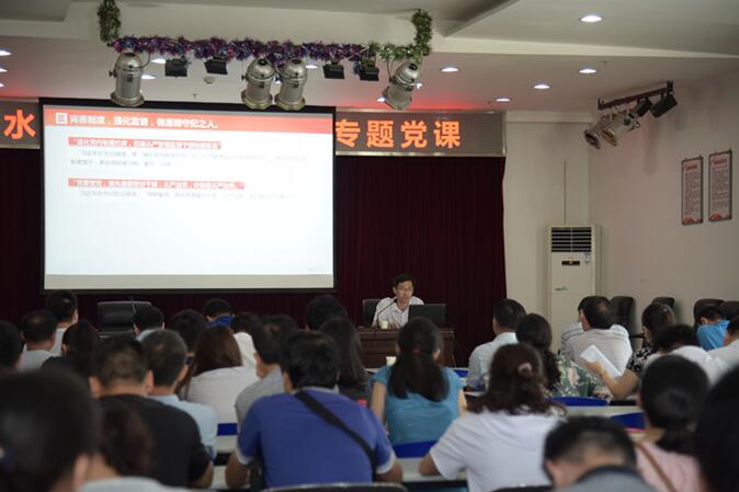 為進(jìn)一步加強(qiáng)黨員干部廉政教育,保障供水企業(yè)健康發(fā)展,6月15日,公司舉行了廉政教育專題黨課。公司全體中層干部,機(jī)關(guān)、營銷、工貿(mào)黨支部全體黨員共120余人參加了活動(dòng)。