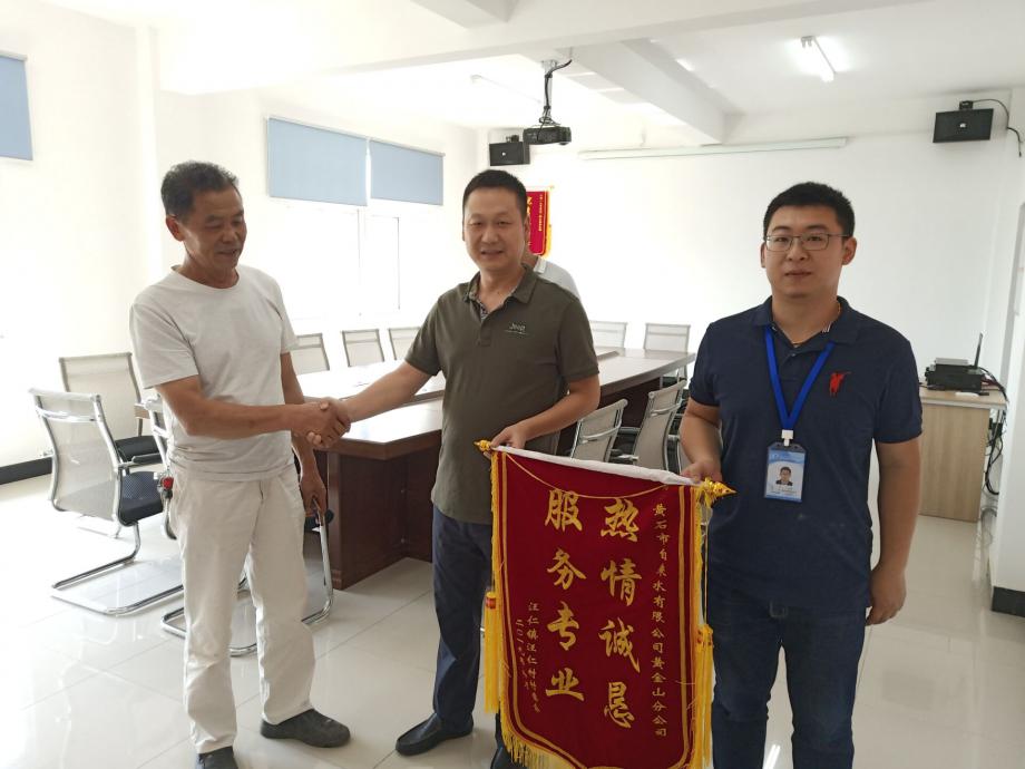 6月4日上午,汪仁鎮(zhèn)汪仁村相關負責人代表全村來到市自來水有限公司黃金山供水分公司,送來了一幅印有“服務專業(yè) 熱情誠懇”的錦旗,對他們貼心為民服務、真誠為民解憂的行為表示感謝。