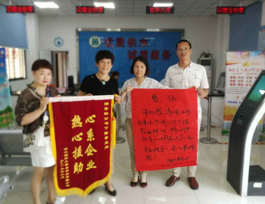 6月 10日下午,一面寫有“熱心援助 心系企業(yè)”的錦旗和手寫感謝信送到了市自來水有限公司經(jīng)營銷售公司下陸營業(yè)所,與之一起送達的還有湖北楠田工模具科技有限公司的感激之情。