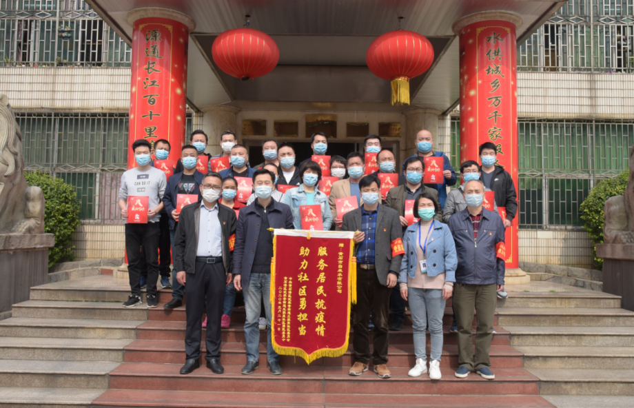 3月23日下午,王家里社區(qū)第一書記劉振洪、社區(qū)書記王凱東一行將一面寫有"服務(wù)居民抗疫情 助力社區(qū)勇?lián)?dāng)”的錦旗送到市自來水有限公司,感謝公司為該社區(qū)疫情防控工作做出的貢獻(xiàn)。