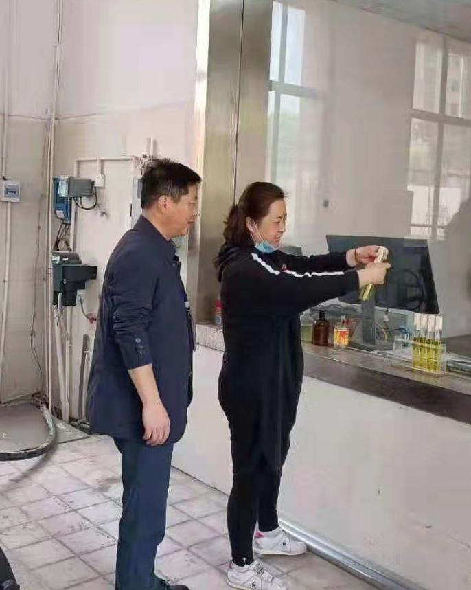 圖8:下陸加壓總站紀(jì)檢委員苗鵬監(jiān)督檢查水質(zhì)檢測情況
