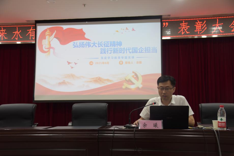 公司黨委書記、董事長余曦同志以《弘揚偉大長征精神 踐行新時代國企擔當》為題講授黨課,生動的回顧了長征的宏偉歷程,從實事求是、密切聯(lián)系群眾、艱苦奮斗、愛國愛人民等四個方面深刻剖析了長征精神內(nèi)涵,并結合公司工作實際,強調(diào):一是要堅定理想信念,踐行初心使命;二是堅持艱苦奮斗,全力保障民生;三是堅持實事求是,深化改革轉型;四是深化作風建設,永葆黨員本色。