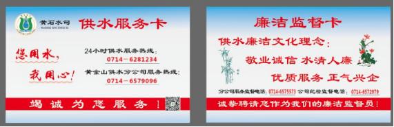 “您用水,我用心!誠(chéng)摯聘請(qǐng)您作為我們的廉潔監(jiān)督員!我們竭盡所能為用戶安全用水保駕護(hù)航” 黃金山供水分公司紀(jì)檢委員葉翔主動(dòng)點(diǎn)對(duì)點(diǎn)上門,向供水區(qū)內(nèi)企業(yè)誠(chéng)意遞上《供水服務(wù)廉潔監(jiān)督卡》。在優(yōu)化營(yíng)商環(huán)境國(guó)家測(cè)評(píng)中,黃石獲得“用水指標(biāo)”考核優(yōu)秀等次,“用水費(fèi)用指標(biāo)”獲評(píng)滿分,成為全國(guó)最佳表現(xiàn)……,細(xì)細(xì)回想,這是從一場(chǎng)名為“廉潔優(yōu)質(zhì)服務(wù)”競(jìng)賽活動(dòng)開始的。
