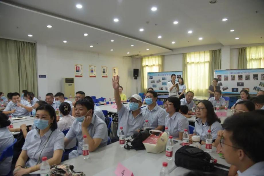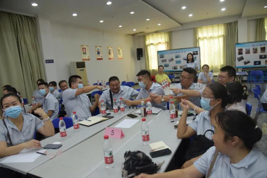 理解責(zé)任與忠誠(chéng)、做到愛崗敬業(yè),既是滿足“孩子面包自由”的生活需求,也是實(shí)現(xiàn)自我價(jià)值提升的途徑,更有著滿足全市市民用水需求的重要意義。來(lái)自知書習(xí)禮(黃石)文化傳播有限公司的老師諄諄引導(dǎo)參與人員認(rèn)知工作的意義、崗位的責(zé)任。職工們分組圍坐,組建團(tuán)隊(duì),為團(tuán)隊(duì)冠名,選出心儀的領(lǐng)隊(duì),在“移花接木”的小游戲中與隊(duì)友開始熟絡(luò),踴躍搶答老師提出的問(wèn)題,為團(tuán)隊(duì)爭(zhēng)奪到獎(jiǎng)分歡呼雀躍,課堂氣氛活躍。