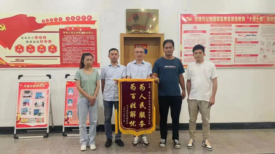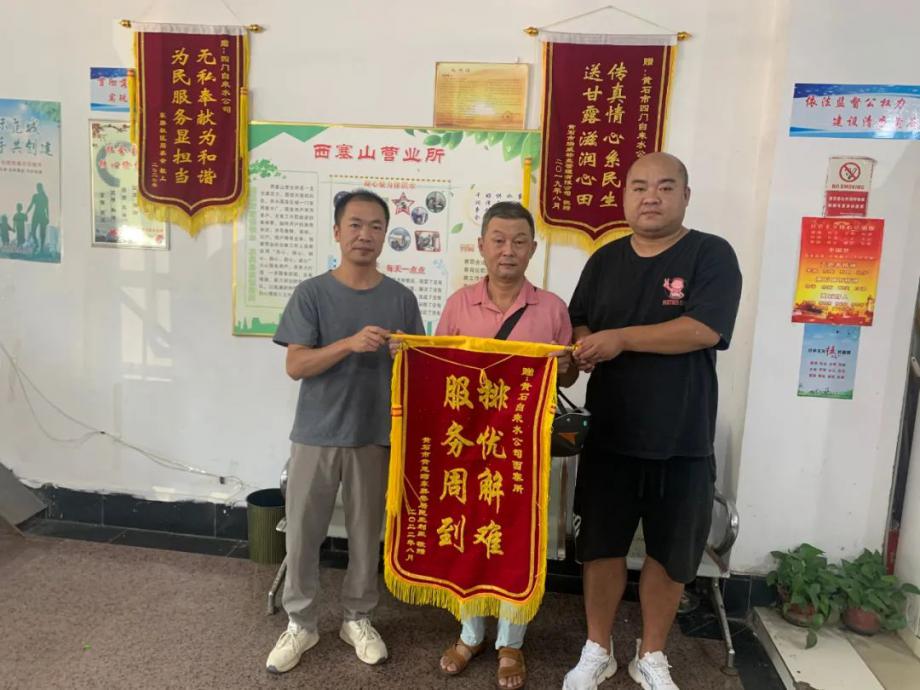 8月9日,陽光灼熱卻擋不住用戶感激之情,市民向市自來水有限公司送上“排憂解難 服務(wù)周到”錦旗,感謝公司及時發(fā)現(xiàn)市民戶內(nèi)管線漏水,免費更換管線維修,保障市民家庭用水。