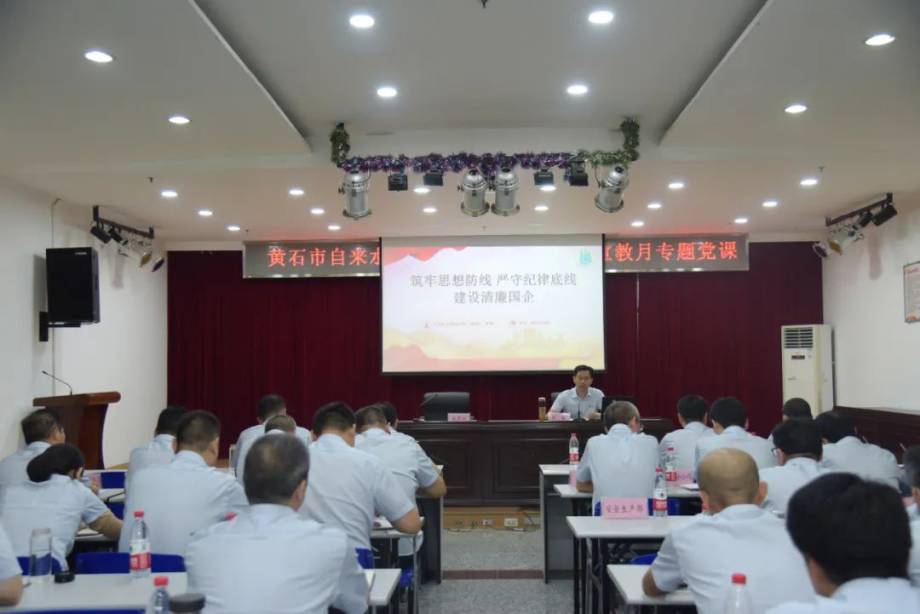 “黨組織負責(zé)人帶頭講廉政黨課,深入闡釋腐蝕和反腐敗斗爭的嚴峻性、復(fù)雜性,講清楚反腐敗斗爭的長期性、艱巨性,教育黨員干部始終保持對‘腐蝕’‘圍獵’的警覺?!卑凑战衲挈h風(fēng)廉政建設(shè)宣傳教育月活動要求,9月2日,一堂以“筑牢思想防線,嚴守紀律底線,建設(shè)清廉國企”為題的專題黨課在市自來水有限公司開講。公司黨委書記、董事長余曦為公司黨委班子成員、基層單位領(lǐng)導(dǎo)班子成員、公司機關(guān)正副職干部講授反腐敗斗爭的深遠意義,引導(dǎo)黨員干部知敬畏、存戒懼、守底線。
