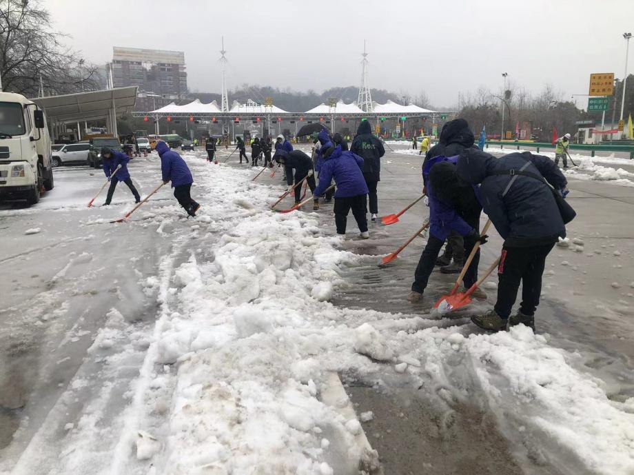 市水務(wù)集團(tuán)應(yīng)急隊(duì)伍清掃高速路口積雪積冰