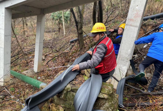 數(shù)十名搶修人員逐段更換破裂供水管,經(jīng)過近4個多小時的奮戰(zhàn),查找并更換破損的DN50水管30余米,并將村灣內(nèi)所有裸露管道整體包裹上保溫海綿。恢復了該村供水,也為極端天氣正常供水做足準備。
