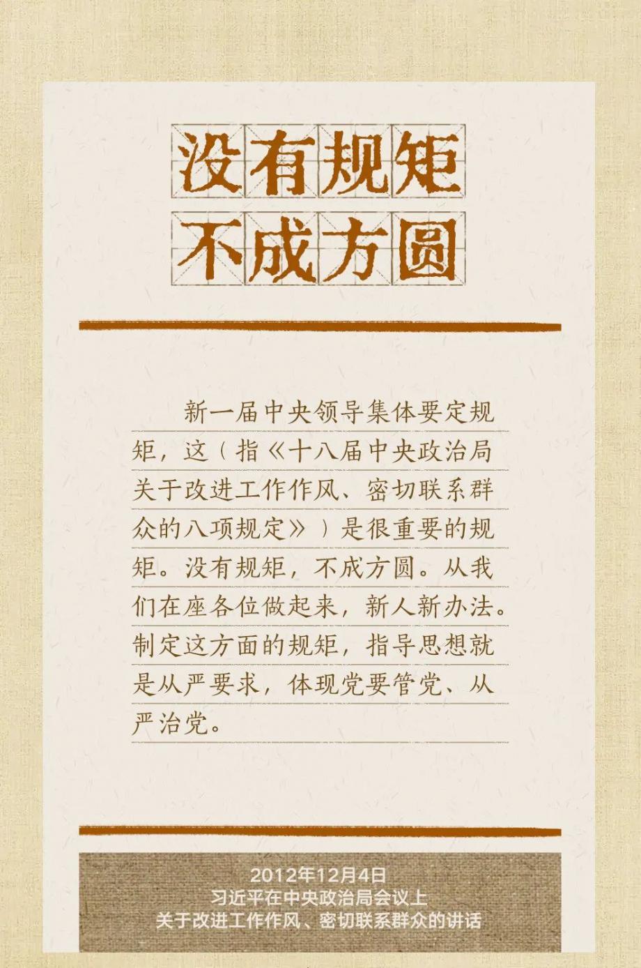 黨的十八大以來,習(xí)近平總書記多次就抓好黨的作風(fēng)建設(shè)、貫徹落實中央八項規(guī)定精神發(fā)表重要講話,作出重要批示,提出明確要求。“沒有規(guī)矩,不成方圓”、“己不正,焉能正人”、“盡小者大,慎微者著”……總書記引用的這些古語耐人尋味。
