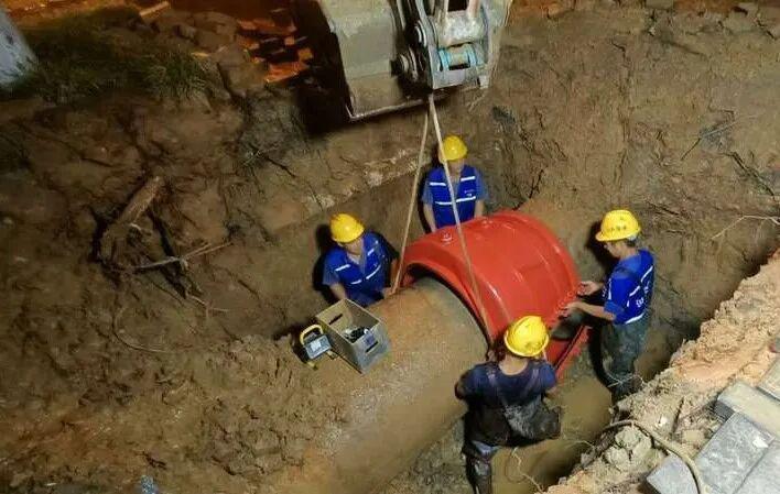 經(jīng)現(xiàn)場查漏定位,搶修人員發(fā)現(xiàn)爆管的是一根DN800的主供水管道——它是團(tuán)城山區(qū)域的主要供水 “動(dòng)脈”??紤]到中秋期間市民用水需求迫切,停水會(huì)給節(jié)日生活帶來諸多不便,管維公司果斷決定:帶水作業(yè)搶修,全力保障供水不間斷。